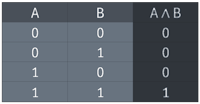 | AND | AND ∧ & && . ∩ | Output is 1 only if all inputs are 1. AND gates can have more than 1 inputs. | Logical conjunction - Wikipedia | ![]() | ||