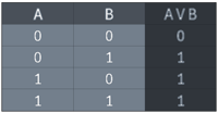 In the diagram we have two input variables (A and B) with one output variable (Q). When either variable (A or B) is true, the output (Q) is true. When both variables A and B are true the output is true. Inversely, if both A and B are false the output is false.